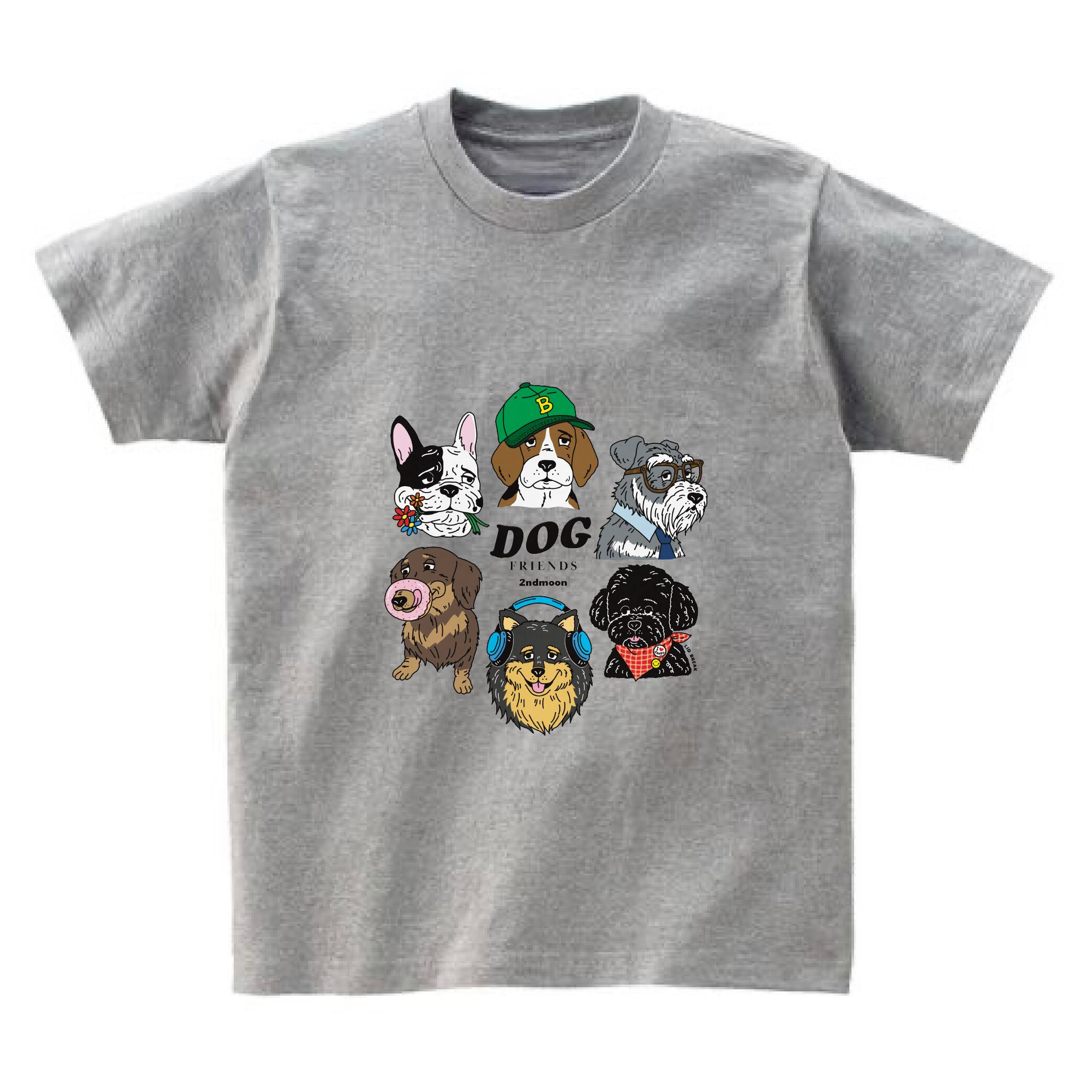 4色カラー Dog & Cat デザイン キッズ 半袖Tシャツ