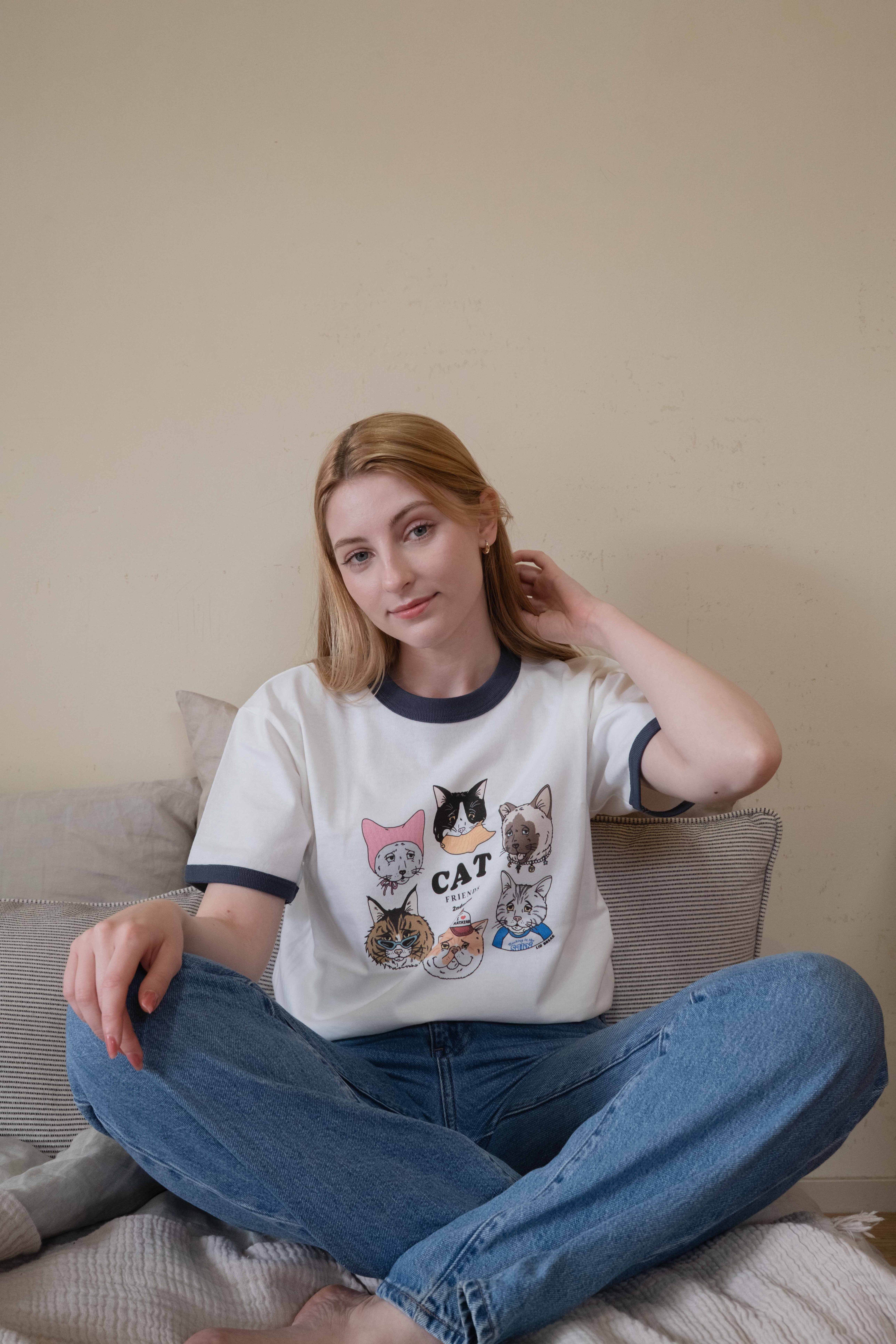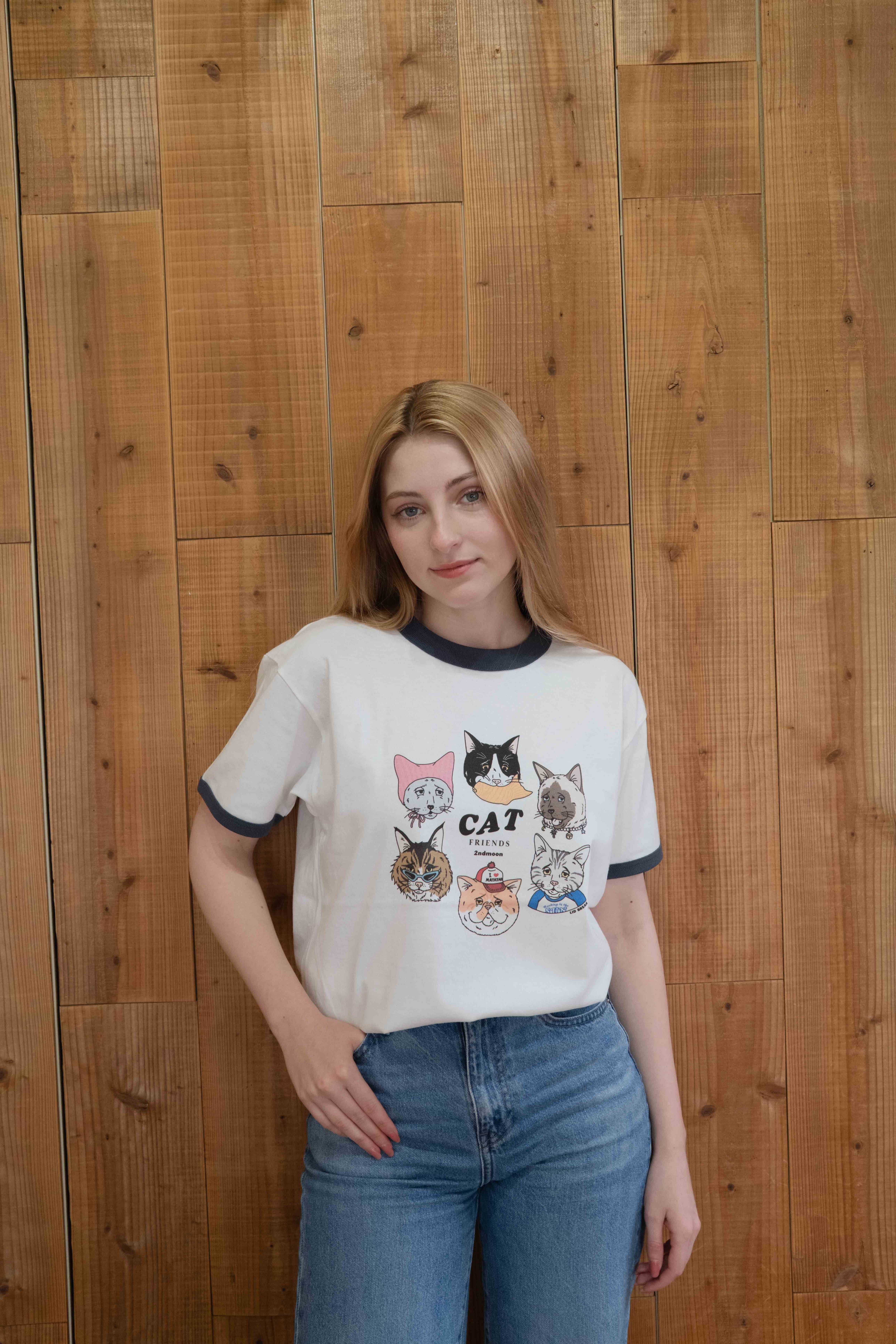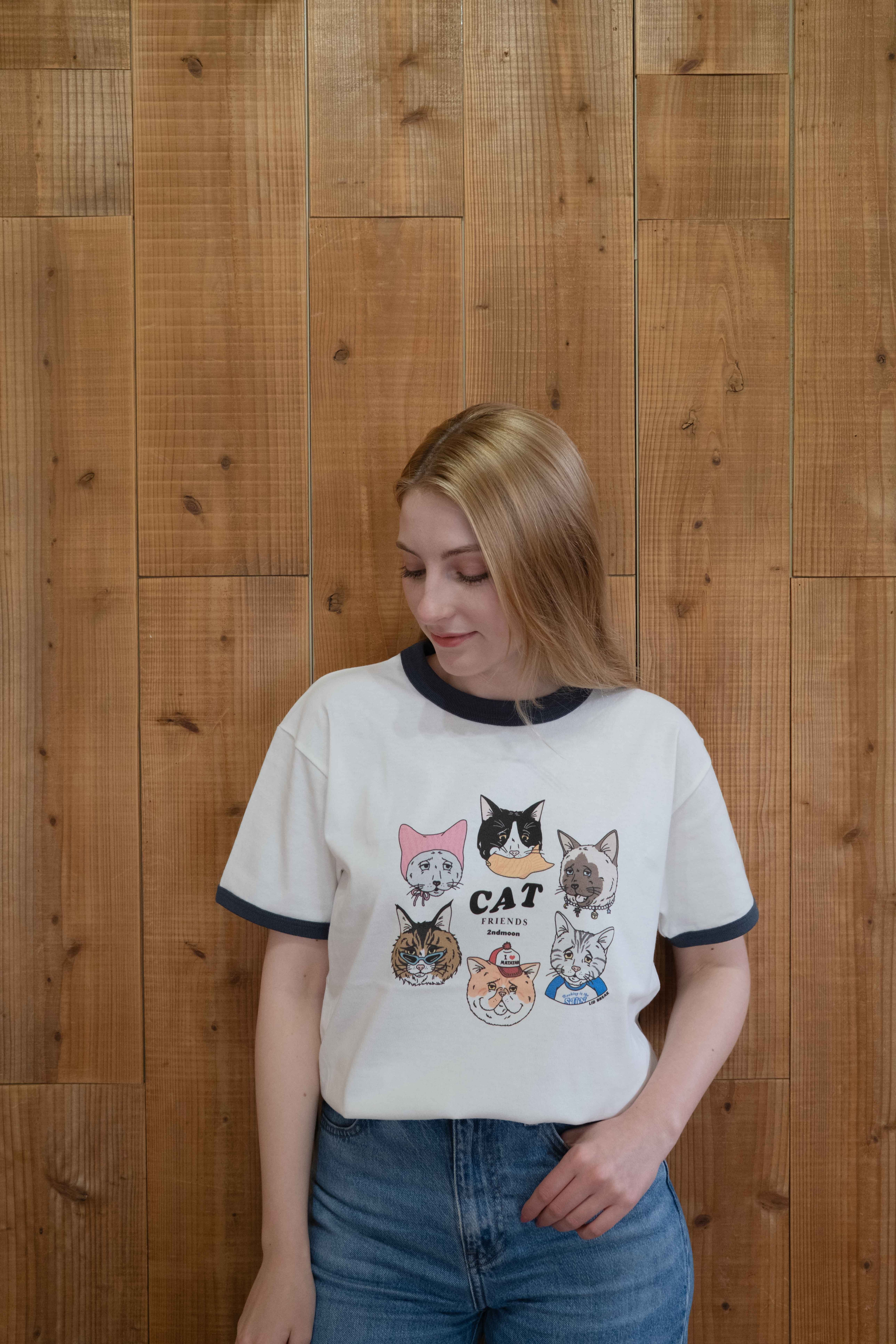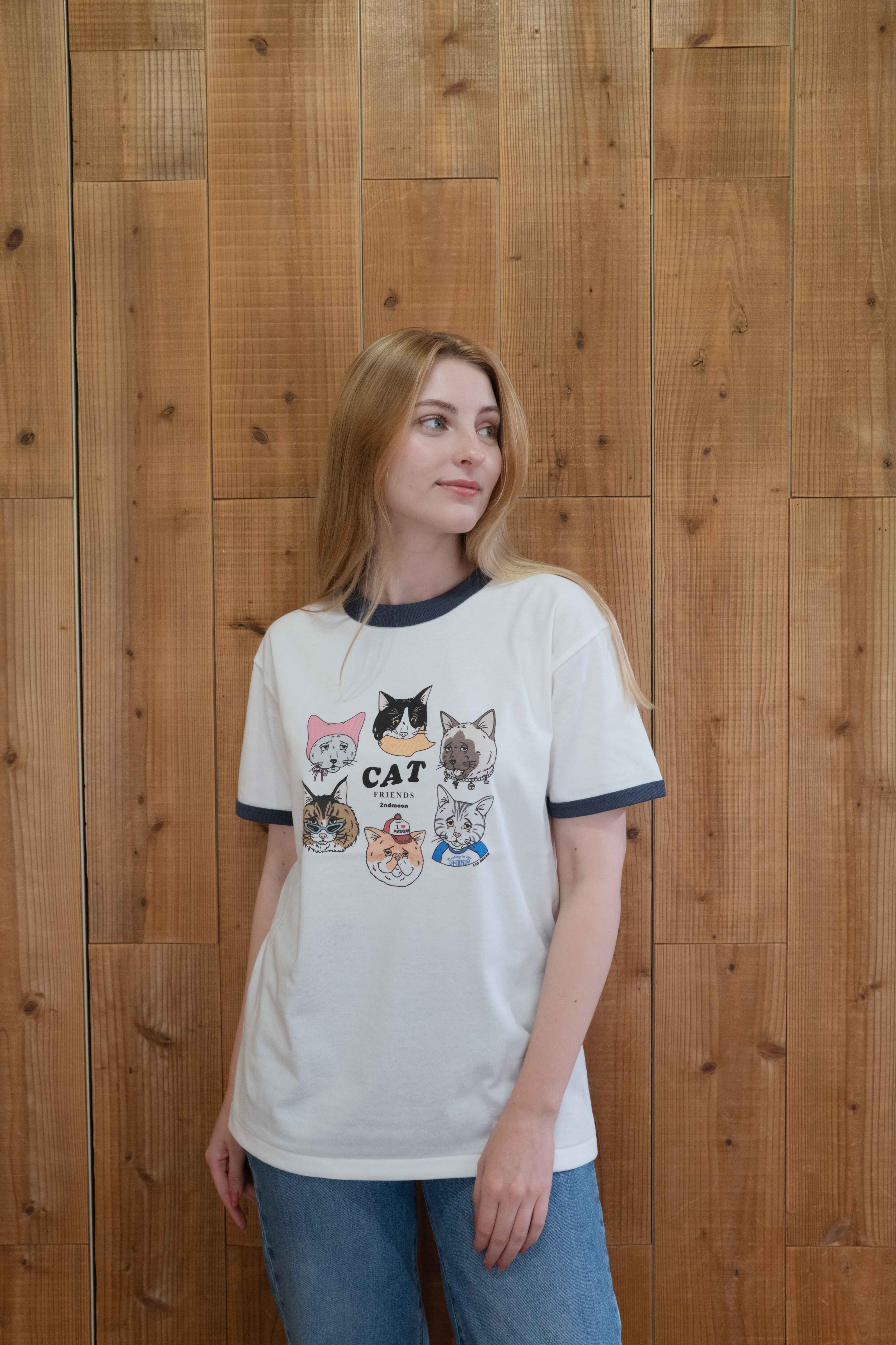 第2弾 Cat design ネイビー リンガーTシャツ
