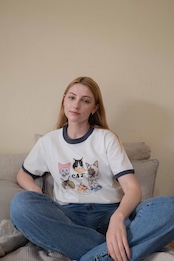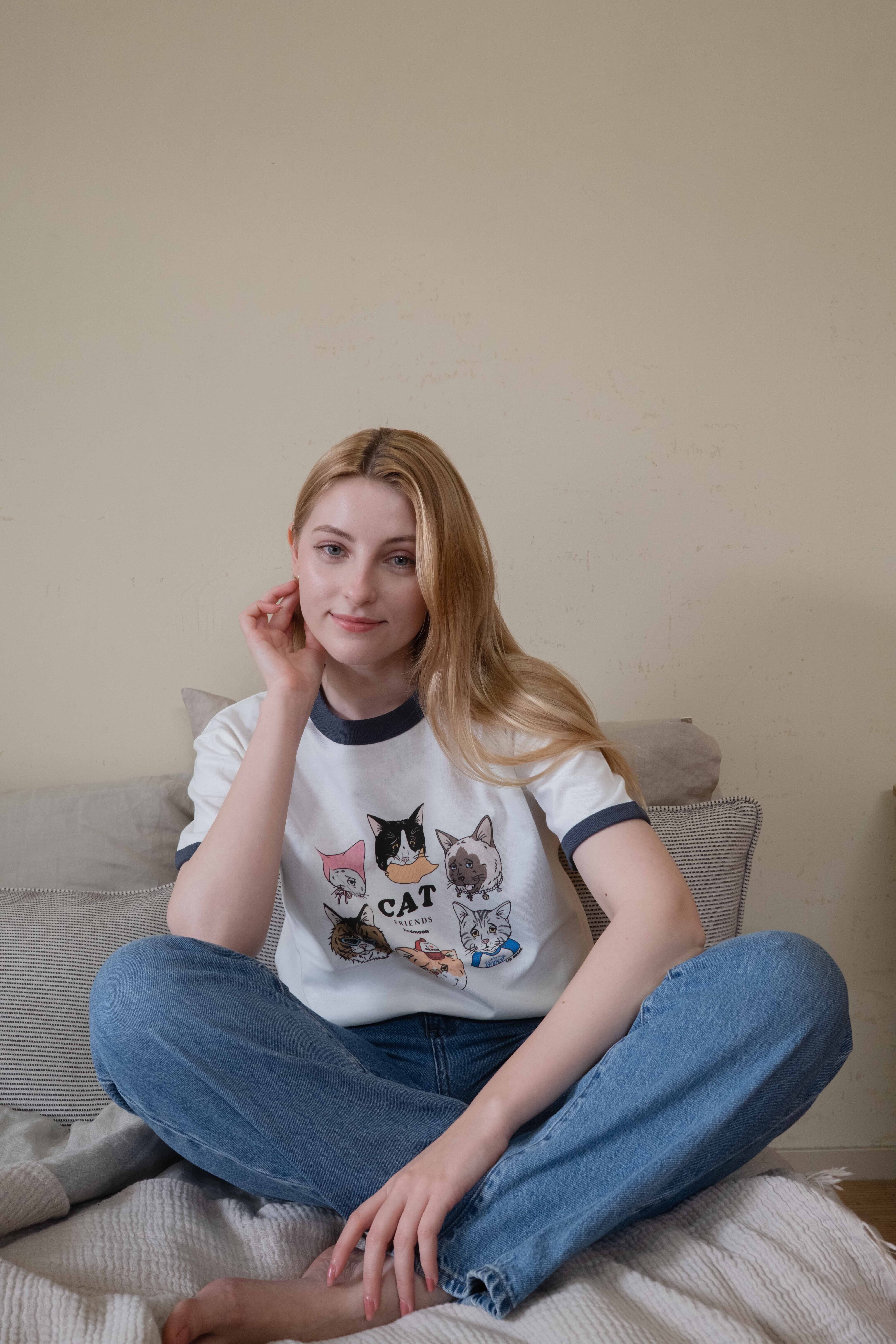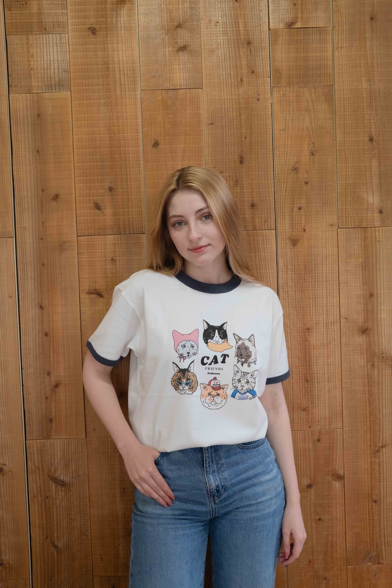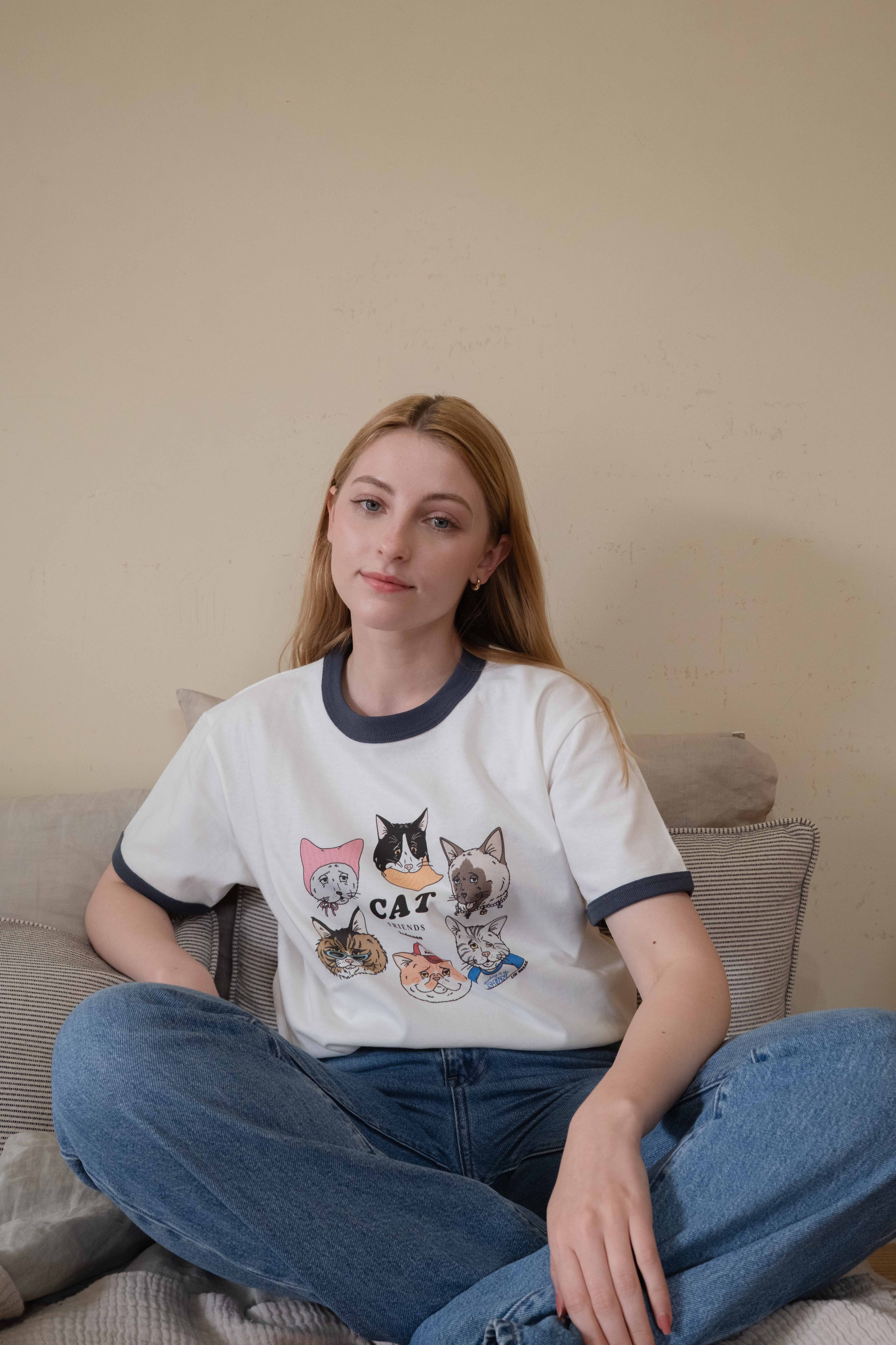 第2弾 Cat design ネイビー リンガーTシャツ