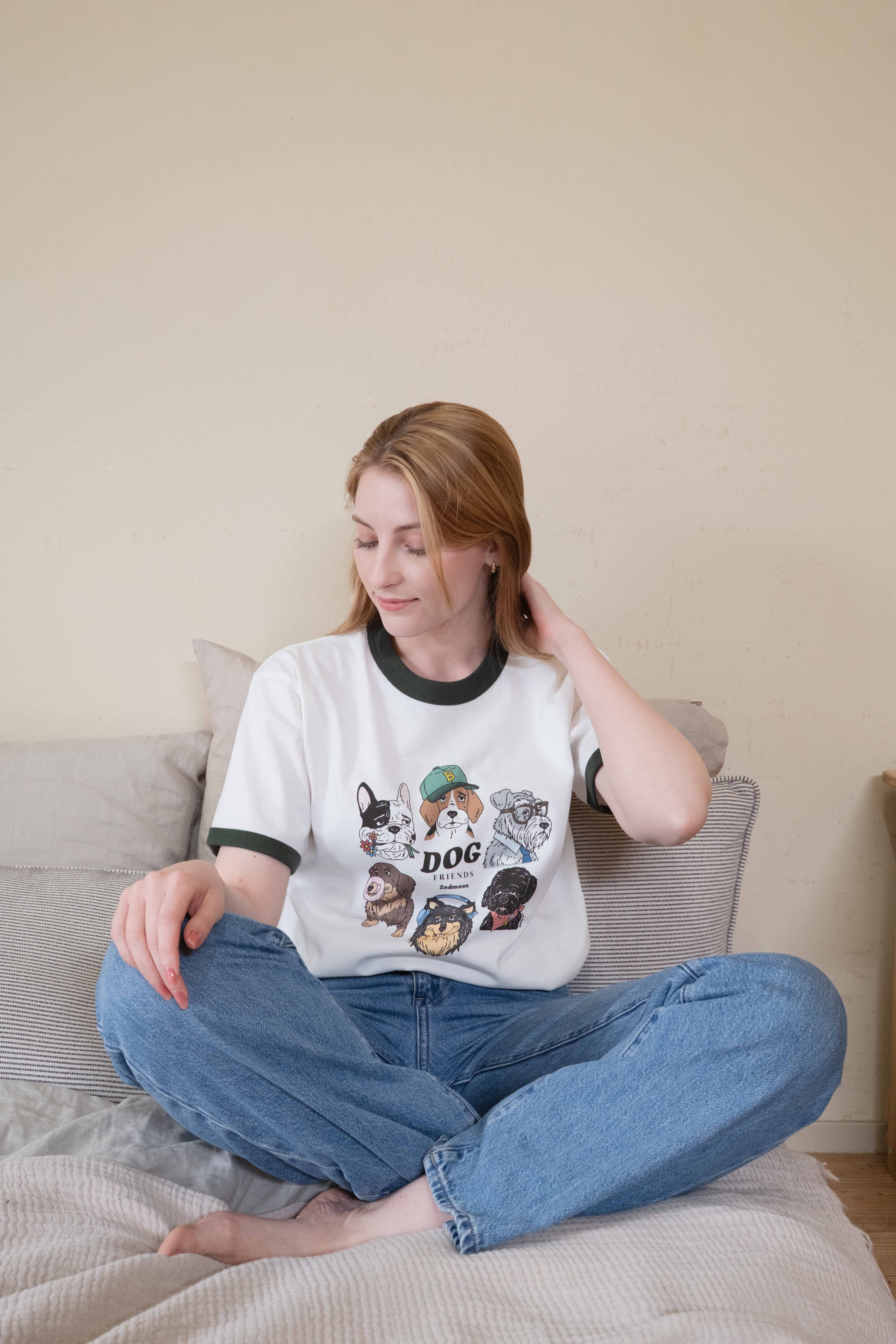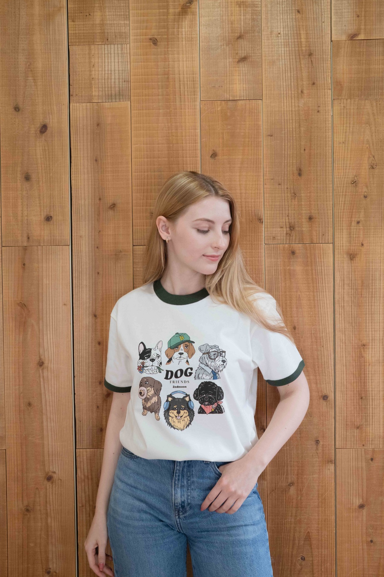 第1弾 Dog design グリーン リンガーTシャツ