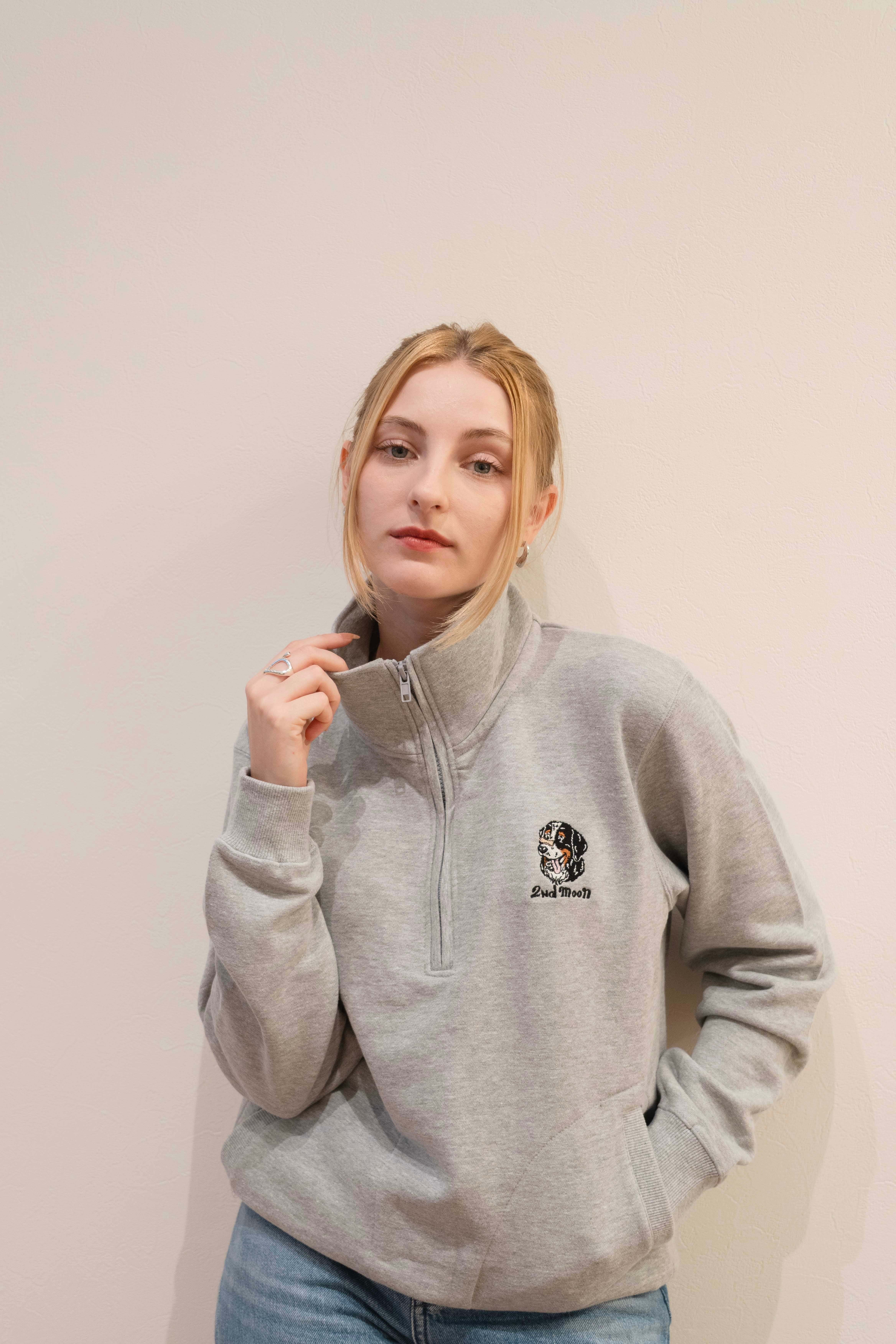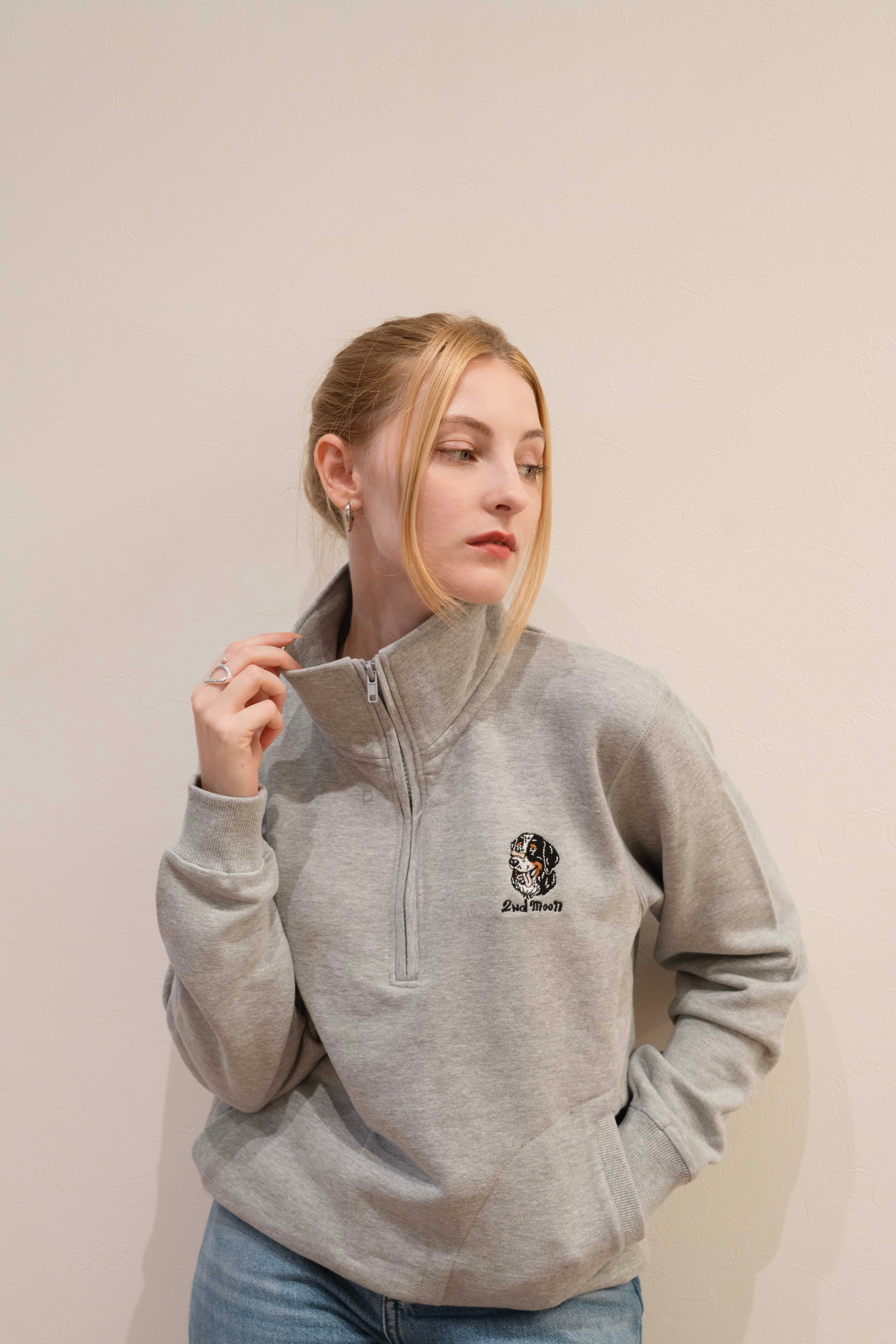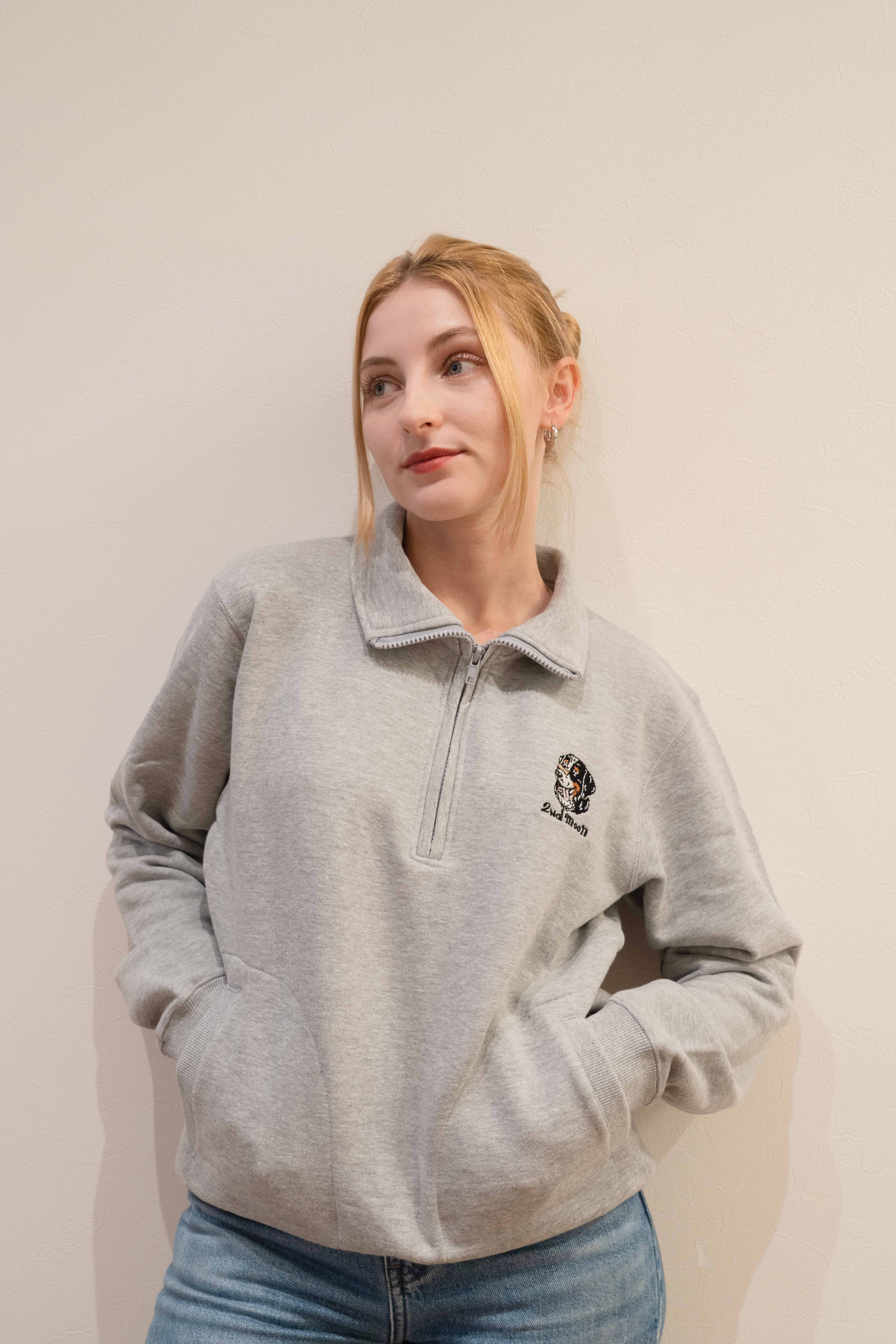 ハーフジップなので着こなしによって雰囲気が変わるのもこちらの商品の特徴です