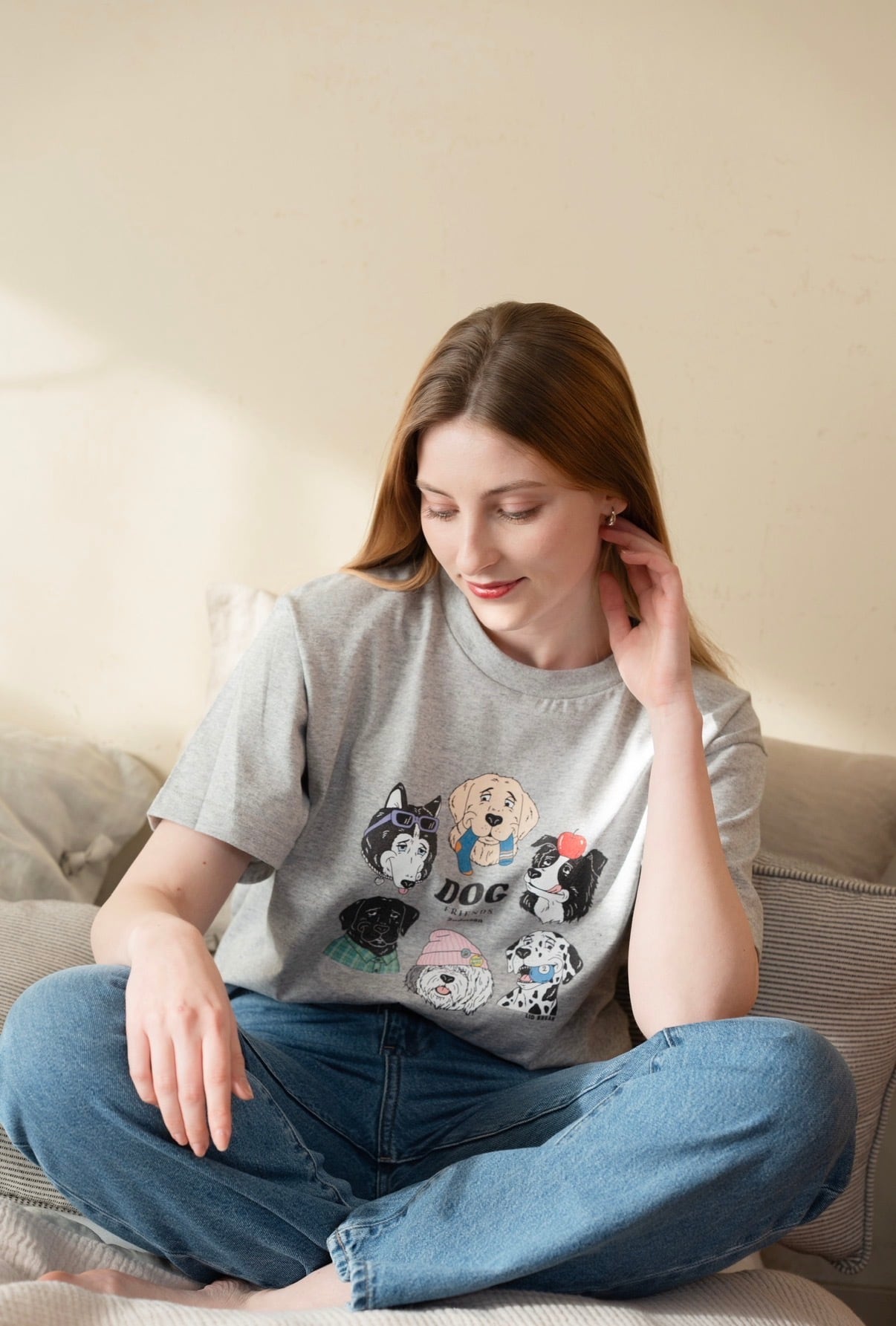 8色カラー 半袖Tシャツ Dog&Cat デザイン